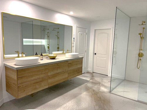 Bathrooms can easily be cold and empty except when warm species such as natural walnut and other woods are brought in for a touch of nature. In addition to beautiful paints colours and great designs that brighten up the space.